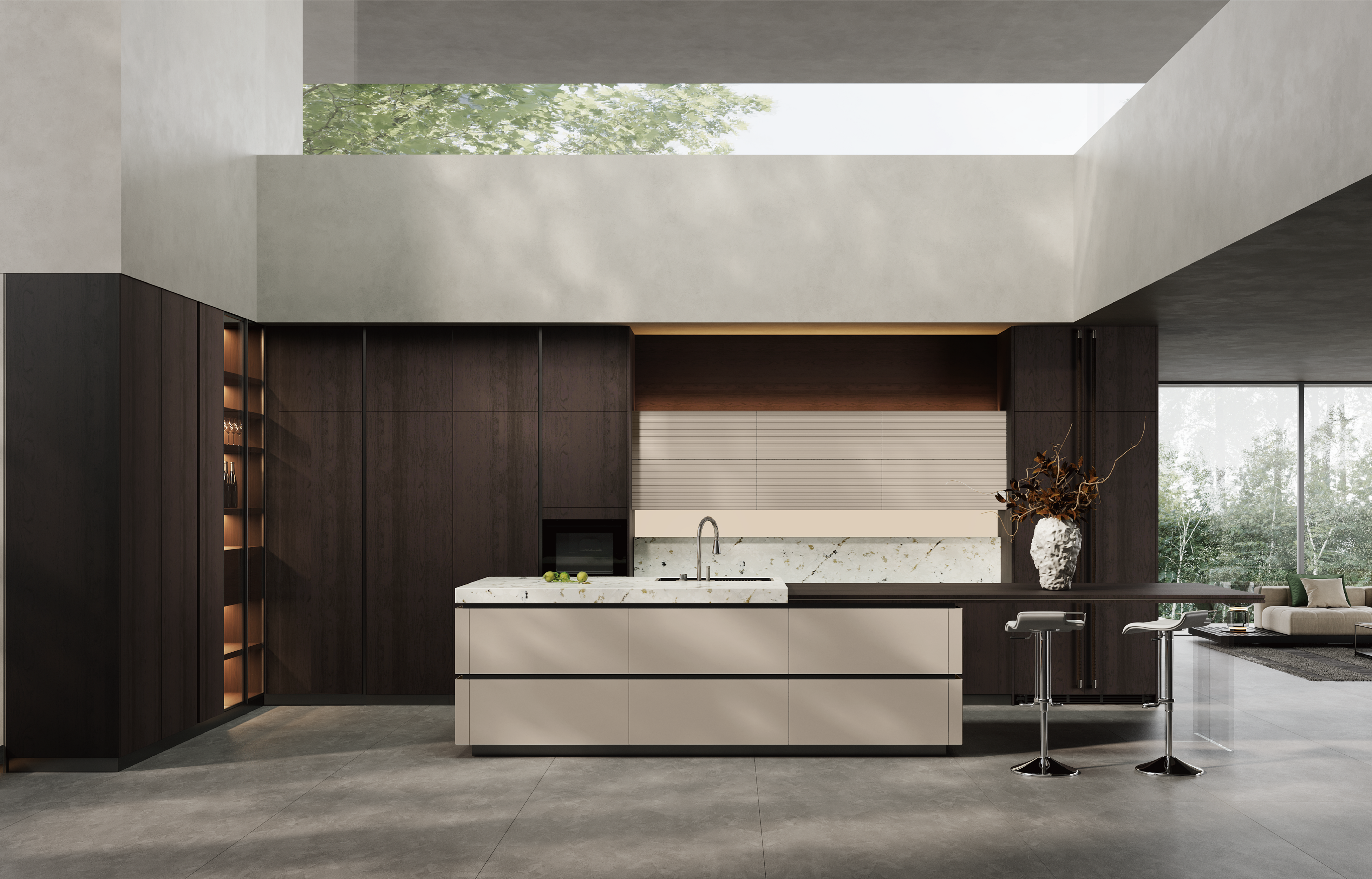 通过极速快3厨柜量体裁柜,定制出适合主厨下厨的烹饪区和洗涤区的舒适高度。